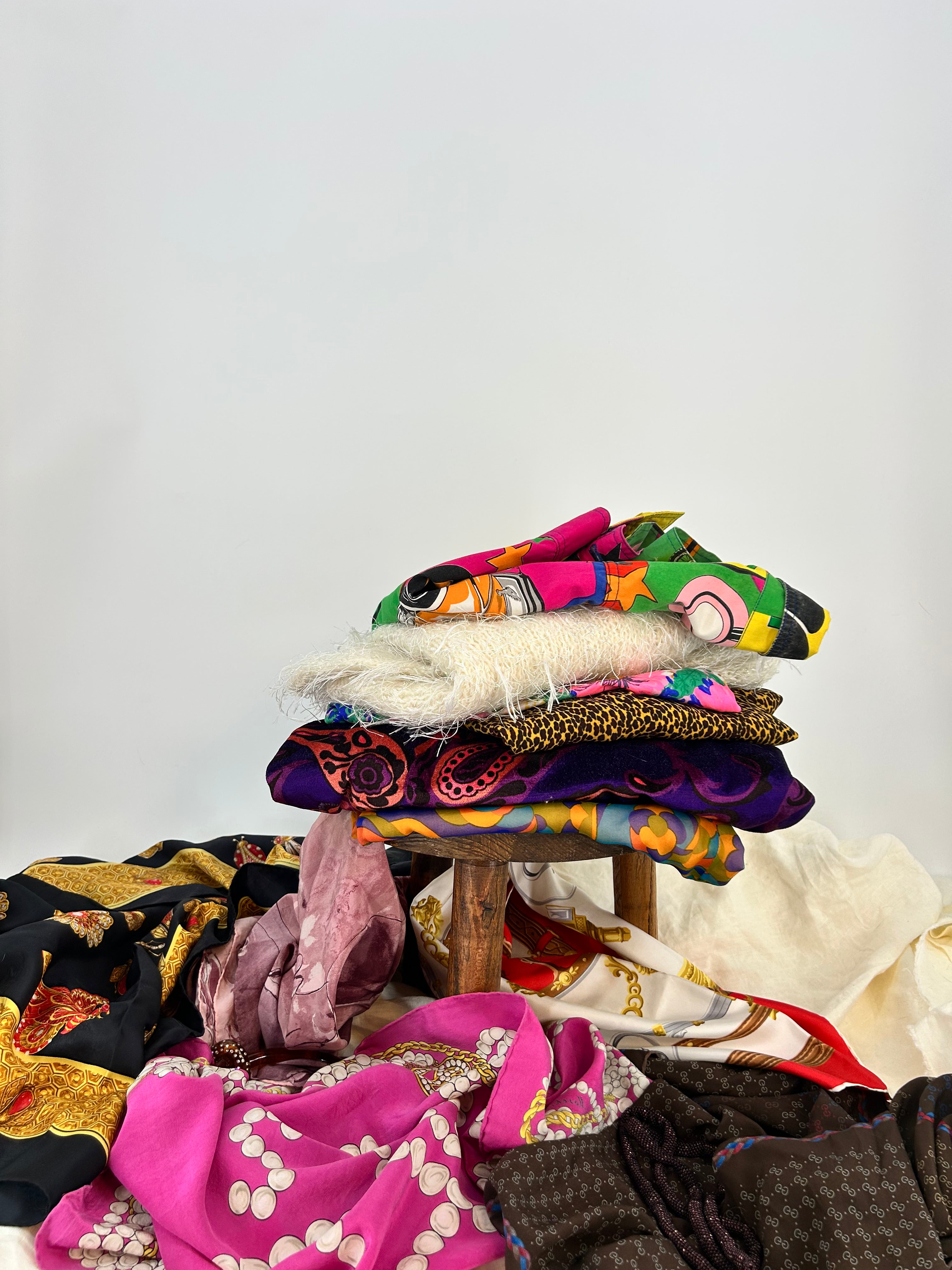 50s scarf or bandana usa-made designer textile harwood steiger pictograph terra cotta bandana